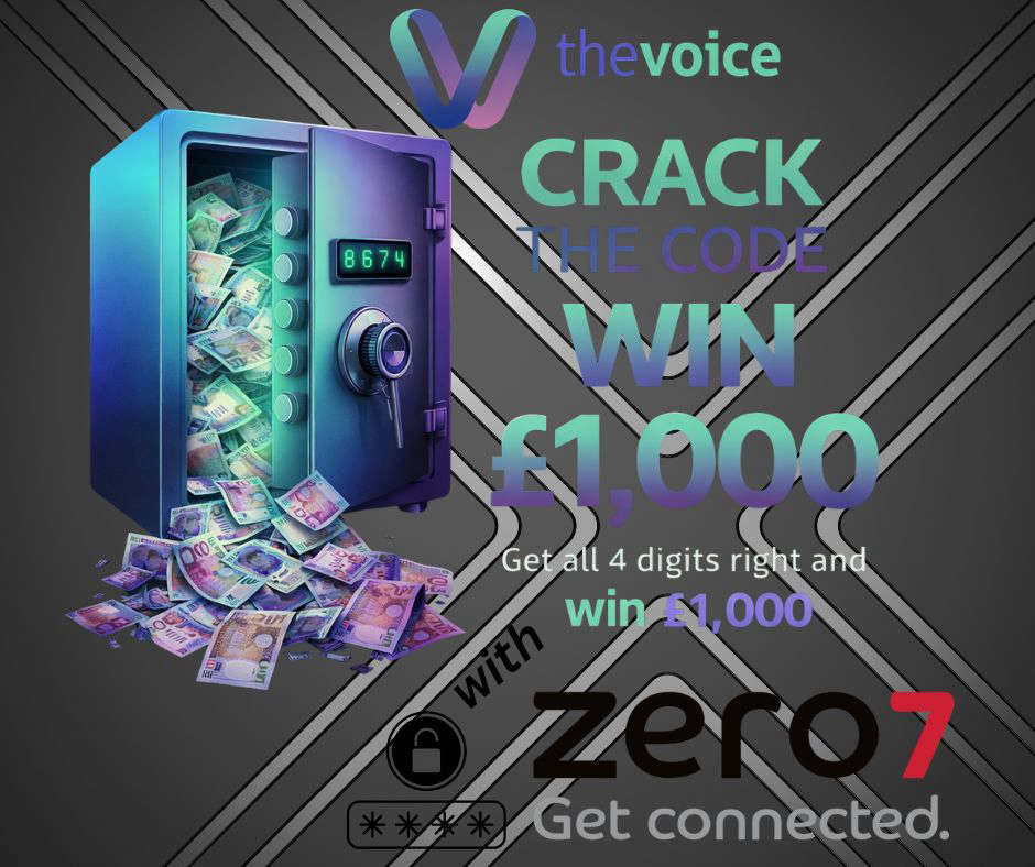 We have £1,000 locked in a safe. All you need to do is "Crack The Code" It's a 4 digit code, and as we have teamed up with ZERO 7 for this promotion, all the numbers are between Zero and 7 inclusive. Listen to The Voice weekdays from 7am until 6pm and when you here the "Crack The Code" Trigger, you need to text us.